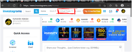 Mag register ka libre lang. tapos click mo virtual trading tab